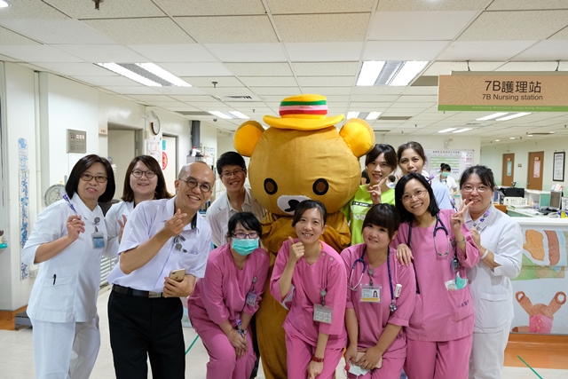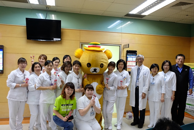 由高雄市民政局委託高雄市立空中大學營運之人權學堂,今日上午在小港醫院邀請民眾向護理人員贈送花束及感謝卡,並給予熱情的擁抱,期以這項「感恩護士、千人贈情」活動,讓白衣天使們驚喜中提前歡度不一樣的「護師節」。