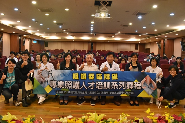 由高雄市政府衛生局主辦的「107年咀嚼吞嚥障礙專業照護人才培訓系列課程」26日在高雄市立小港醫院舉行。高雄市政府衛生局李素華科長與小港醫院郭昭宏院長主持,邀集黃純德教授、大同醫院護理部馮明珠主任、小港醫院神經內科、復健科、牙科、護理部與營養室各專業師資,期透過兩天課程互相討論,為咀嚼吞嚥障礙照護提供更多寶貴建議。
